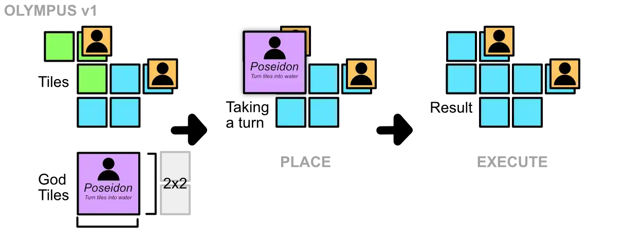 Placing means putting the God tile over a 2x2 area of the map. (This means that the God’s power will affect this little area.)
