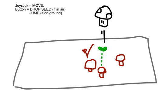 When in the air, you can throw seeds underneath you. When they hit something, they grow a mushroom on top of it. These act as trampolines or pillows.